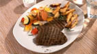 ... hauchdünnes gegrilltes Rinderpaillard auf texanischem Grillgemüse mit Paprika, Zucchini, Möhren und roten Zwiebeln, holypotatoes und Sourcream