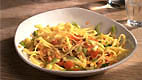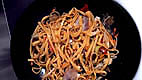 ... gebratene Hartweizennudeln mit asiatischem Gemüse in fruchtiger Mango-Chili-Sauce aus dem Wok