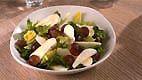 ... Romanasalat mit Birnenspalten, Weintrauben und Brie und weißem Balsamico-Dressing2,5