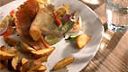 ... dreierlei Fischfilets auf asiatischem Gemüse, holypotatoes und Sourcream